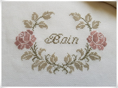 Dans le O une petite rose brodée sur aida 8, plus facile pour mes yeux